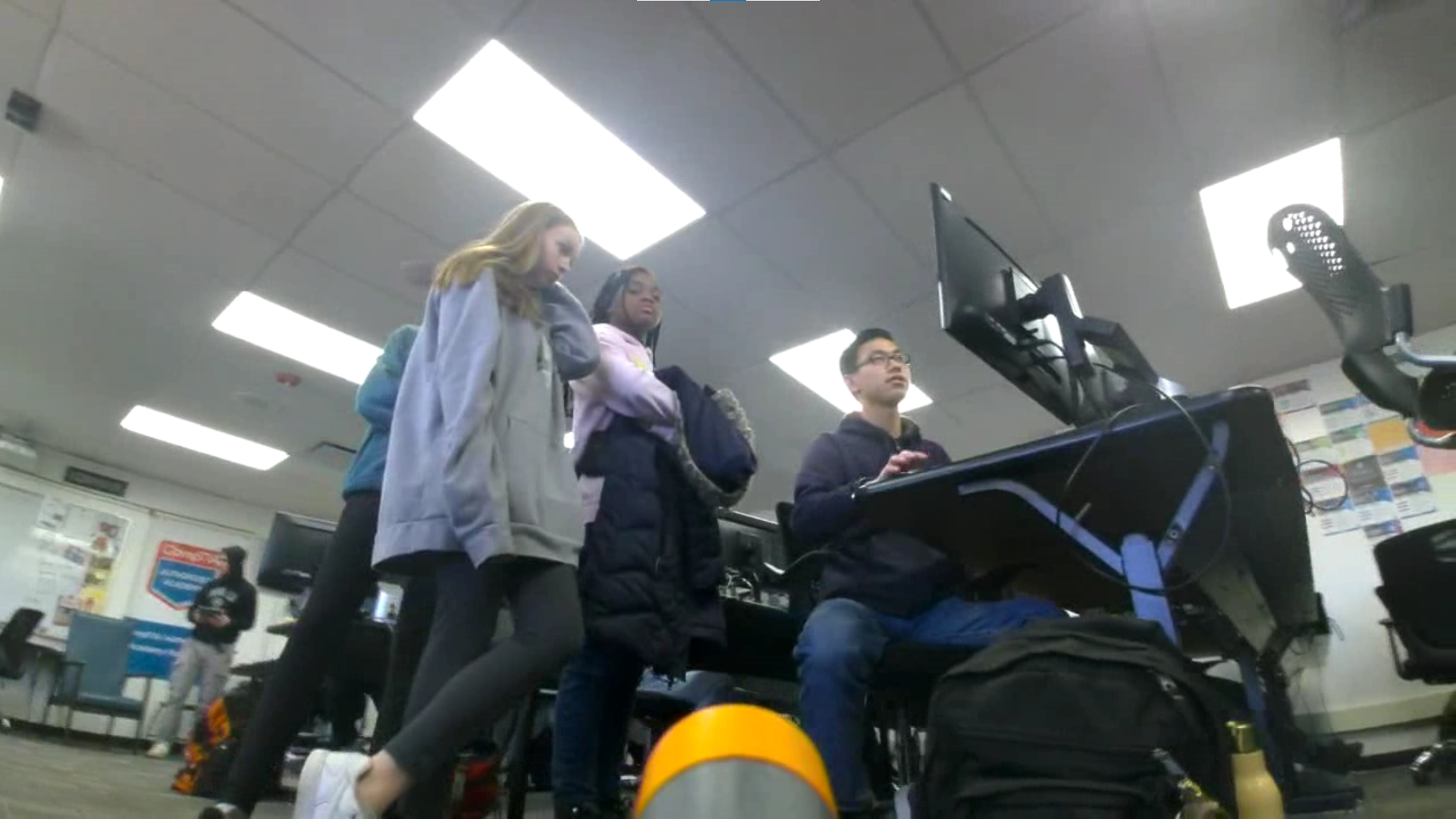 Our classroom provided a fun entertaining enviornment for the middle schoolers who visited us. Here is an image taken from one of the robots they were driving.